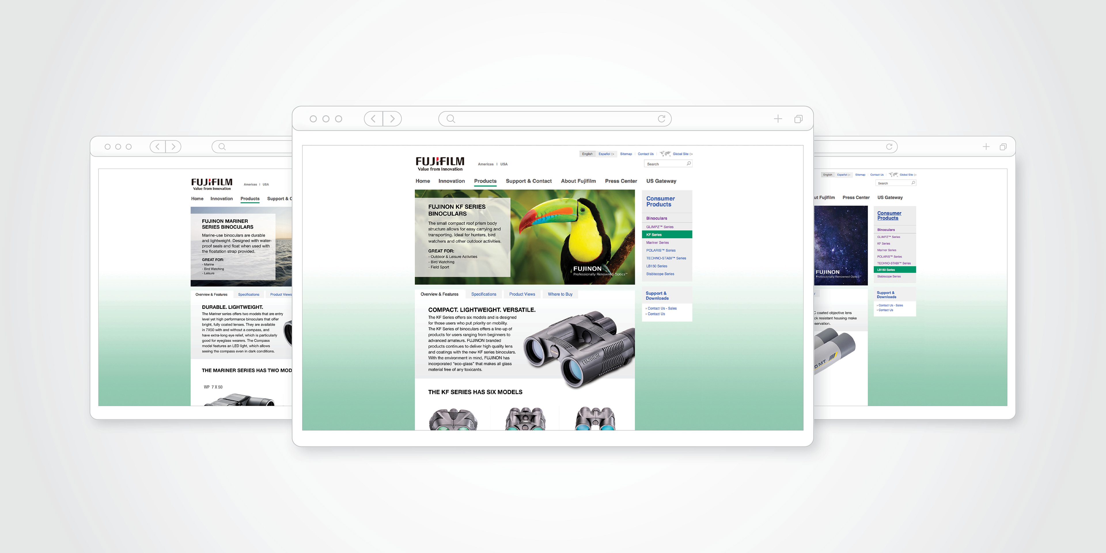 As a premier leader in optical technology, FUJFILM had great confidence in reentering the Sports Optics category. From a strategic standpoint, FUJIFILM chose to capitalize on the history of its legendary FUJINON optics brand. But this approach presented several challenges. Not only did we have to rebrand two already successful product lines, but we also had to determine the best way to communicate that FUJIFILM’s FUJINON brand was one of the most trusted names in optical performance. We started by creating a sophisticated new look-n-feel for the brand’s two product lines – the FUJINON Binocular line and the FUJINON Sport Scopes line. The initial launch included the development of the brand’s core campaign messaging along with packaging and point-of-sale tactics. We then produced the marketing and sales support materials—and as the launch rollout matured, we naturally progressed into digital advertising and online support.