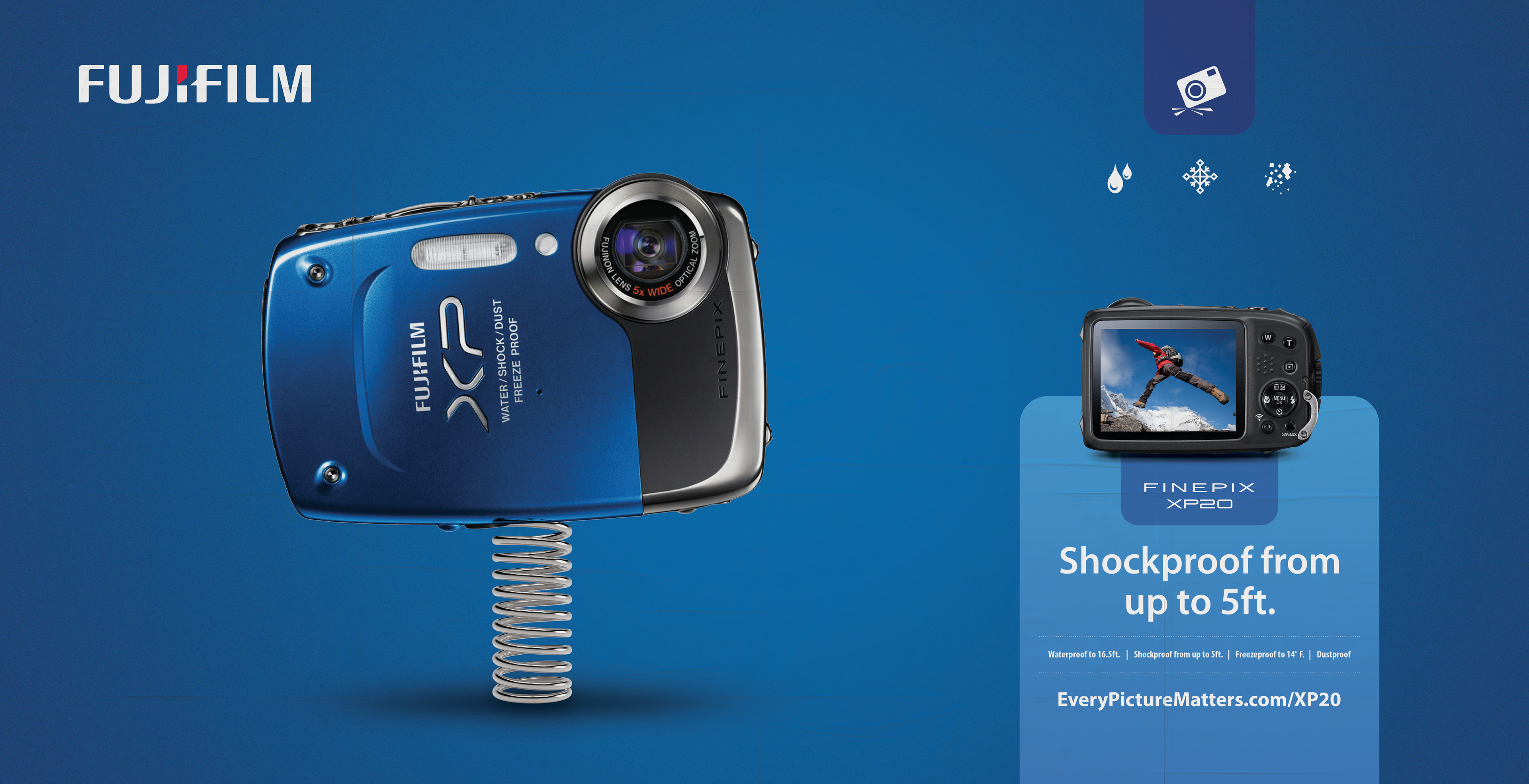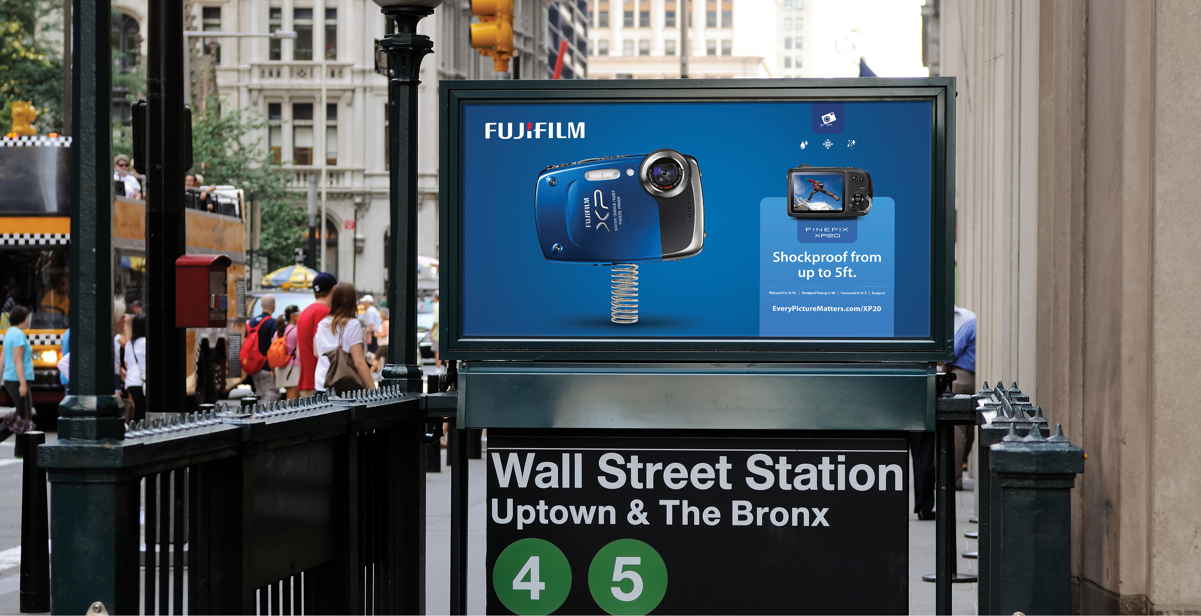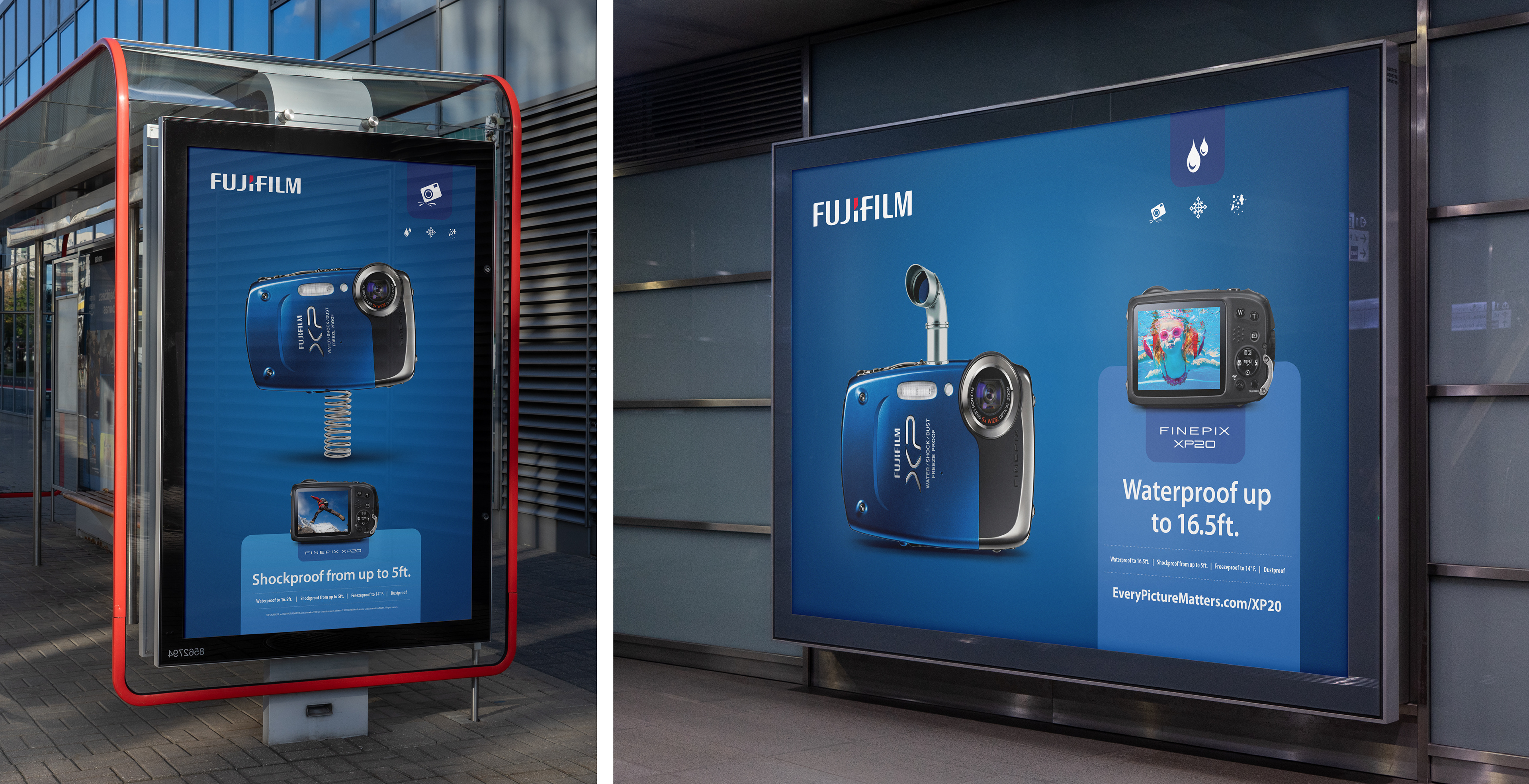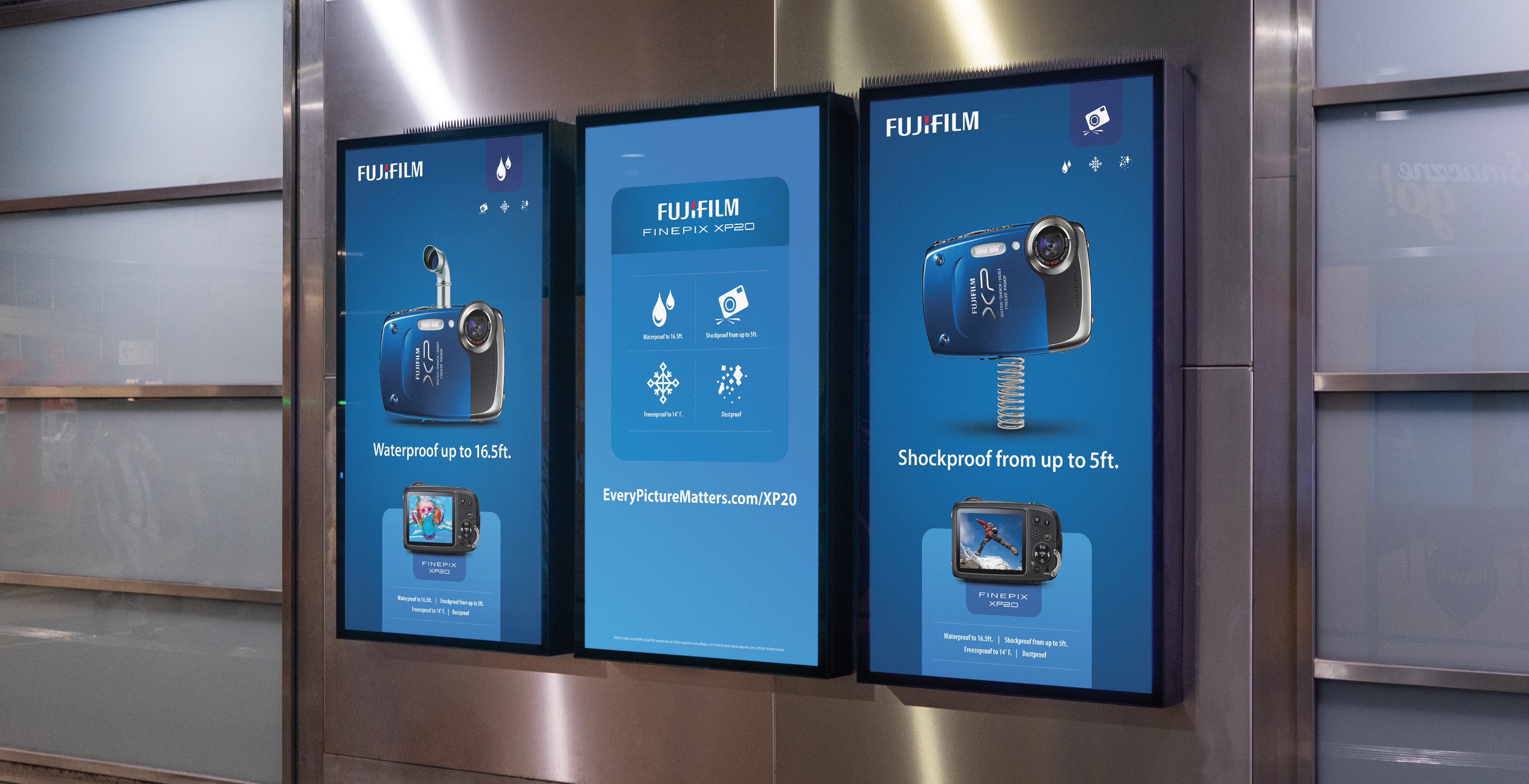 How could you possibly break into an already-dominated retail category? Well… that’s exactly what FUJIFILM did with its FinePix XP20 product launch. With a range of models and features far superior to any close competitor, Olympus completely controlled the waterproof digital camera market. All indications suggested a barrier to entry that simply said “don’t even try.” But in just three short months of intense product development, FUJIFILM changed all that. Instead of building another “me-too” waterproof digital camera that would blend into the existing sea of options, they honed-in on what the active lifestyle target consumer was missing – style and durability. The FUJIFILM FinePix XP20 strikes the perfect balance between the technology customers need and the attitude they really want. But then came the real challenge. We knew that for this product to be successful, the launch had to be perfect. We saw no better time to launch a waterproof digital camera than summer, so we aggressively aggregated the media spend over just a few short months. Then, we layered in a beautiful mix of print, online and out-of-home advertising, as well as GPS targeted mobile billboards. The risks paid off tremendously. The stunning creative and masterfully executed media plan were investments that paid for themselves multiple times over in business and sales impact.